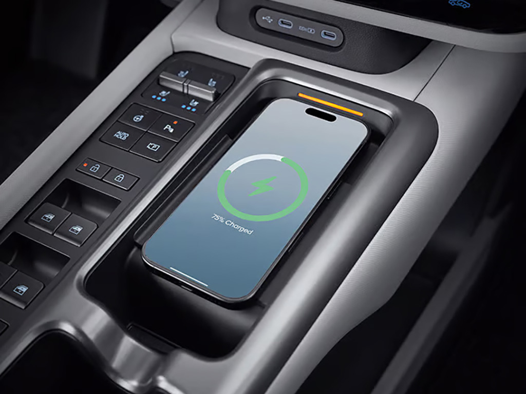 Lataa matkapuhelintasi keskikonsolin nopeassa langattomassa latausalustassa tai hyödynnä tehokkaita 100W:n USB-C -portteja laitteillesi. Voit käyttää myös tehokkaampia sähkölaitteita auton V2L-virran ulosoton avulla, joka tarjoaa jopa 3,6 kW:n tehon.
