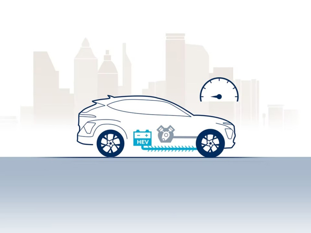 Ajotilanteesta ja -olosuhteista riippuen KONA Hybrid vaihtaa huomaamattomasti voimantuottoa sähkö- ja polttomoottorin välillä. Regeneratiivinen energiantalteenotto kerää akkuun virtaa ajon aikana, ja sähkömoottori hyödyntää sitä parhaan mahdollisen energiatehokkuuden saavuttamiseksi.