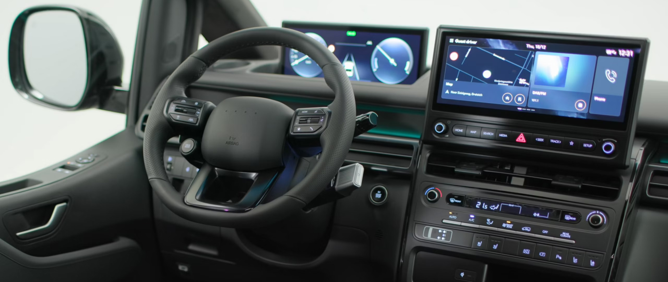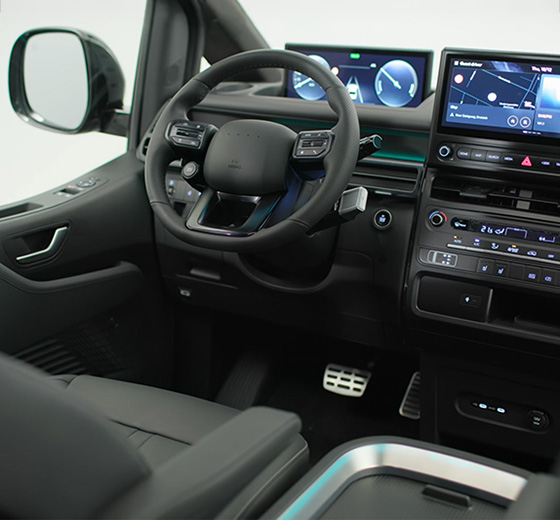 STARIA Electricin huiman pitkä 3 275 mm akseliväli takaa tilavan matkustamon. Tavaratilaa on 3. istuinrivin takana malliversiosta riippuen 431 tai 1 303 litraa. Leveät liukuovet tekevät autoon käymisestä vaivatonta.