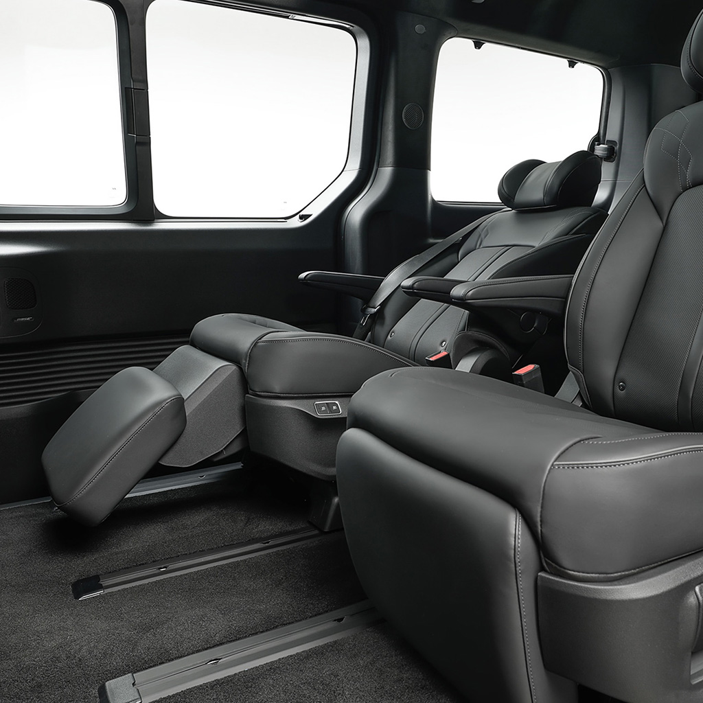STARIA Electricin 7-paikkaisessa mallissa istuinjärjestely on 2+2+3. Keskirivin monipuolisesti säädettävät erillisistuimet tuovat arkeen ripauksen luksusta.