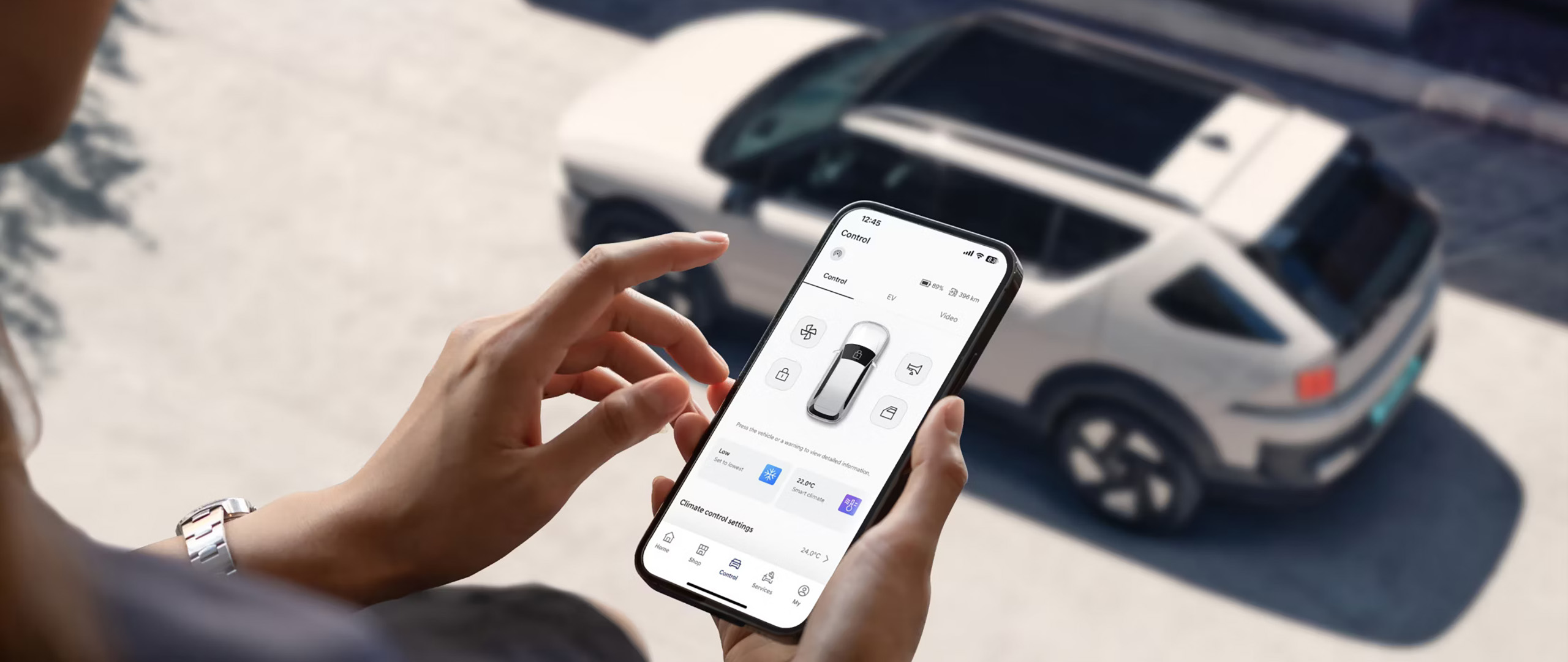 Tarkista ajoneuvosi tila sekä sijainti nopeasti puhelimeltasi. Voit mm. hallita auton lukitusta, käynnistää ilmastoinnin tai säätää latausajankohtaa sovelluksen kautta.