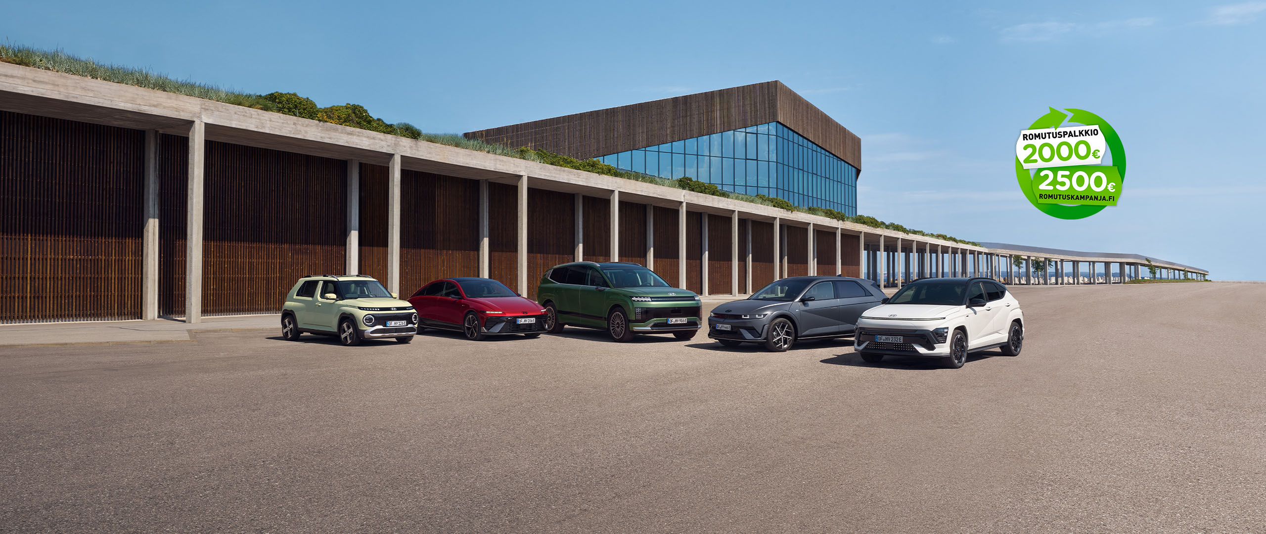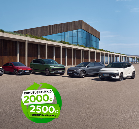 Hyundain laajassa mallistossa on romutuspalkkiokampanjaan soveltuvia automalleja niin itselataavina täyshybrideinä, ladattavina Plug-In Hybrideinä, täyssähköautoina kuina vetypolttokennoautoinakin.