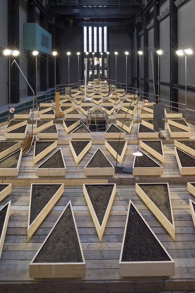 Kahdessa tasossa sijaitsevat kolmion muotoiset lavat ulottuvat pitkin Tate Modernin ikonista Turbiinihallia. Turbiinihalli on vaikuttavat 35 metriä korkea ja 152 metriä pitkä. Veistos kutsuu kävijöitä vaeltamaan ja tutkimaan lavoja alhaalta ja myös katsomaan työtä ylhäältä turbiinihallin sillalta. Lavat kannattelevat geometrista verkkoa, joka muodostuu 240 puisesta istutusastiasta. Niissä on yli 23 tonnia kompostia ja Lontoon puistoista ja pihoilta kerättyä multaa.