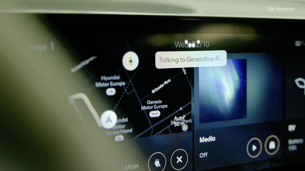 Hyundain uuden digitaalisen ekosysteemin ytimessä on Hyundai AI Assistant, ääniohjattu järjestelmä, joka tuo generatiivisen tekoälyn auton ohjaamoon. Se on suunniteltu kontekstia tunnistaviin keskusteluihin. Järjestelmä ymmärtää monimutkaisia kysymyksiä ja vastaa selkeillä, relevanteilla vastauksilla.